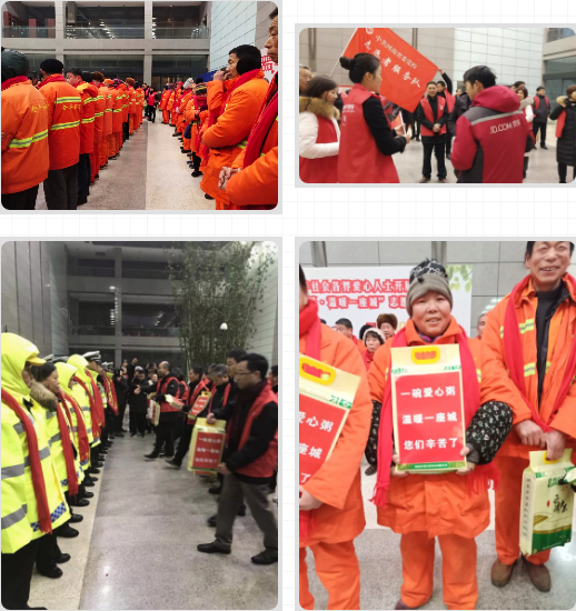 120余名環(huán)衛(wèi)工人、交通警察、學(xué)雷鋒出租車隊司機及快遞小哥代表。50多名志愿者干的熱火朝天,贈送了臘八粥及120余份紅圍巾和大米,以此表達良好祝愿和節(jié)日祝福。
