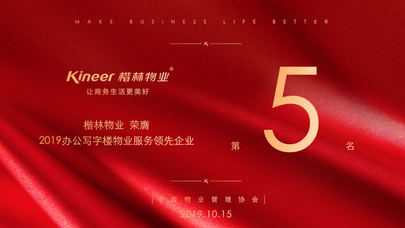 2019年10月15日,由中國物業(yè)管理協(xié)會(huì)主辦的“第五屆中國物業(yè)管理創(chuàng)新發(fā)展論壇”在深圳隆重舉行,本次論壇以“數(shù)字經(jīng)濟(jì)下的物業(yè)服務(wù)創(chuàng)新”為主題,論壇上發(fā)布了《2019物業(yè)服務(wù)企業(yè)發(fā)展指數(shù)測(cè)評(píng)報(bào)告》,楷林物業(yè)憑借在寫字樓物業(yè)領(lǐng)域的專業(yè)與專注,榮膺“2019辦公寫字樓物業(yè)服務(wù)領(lǐng)先企業(yè)TOP5”。